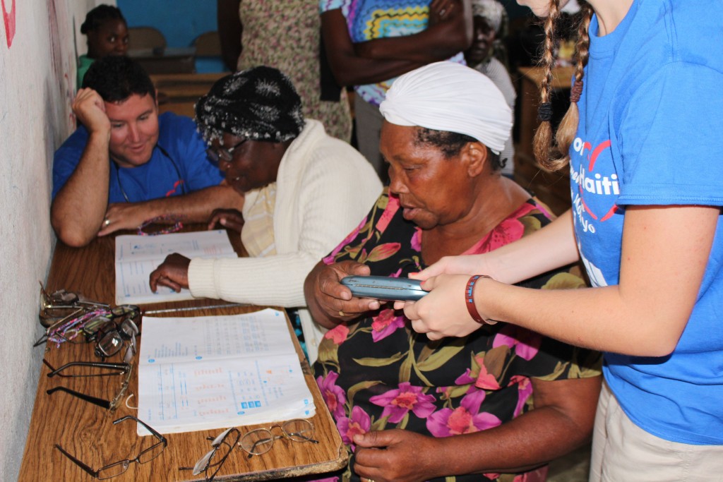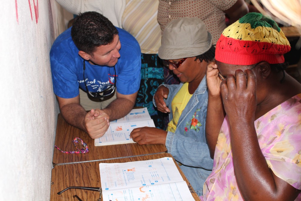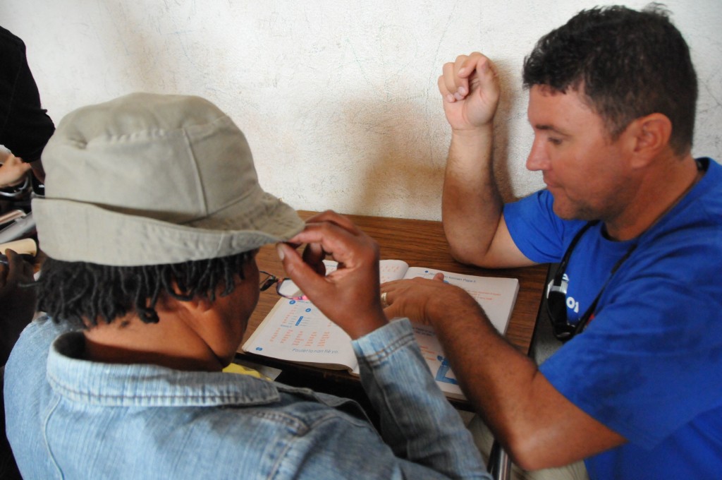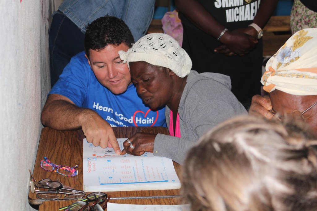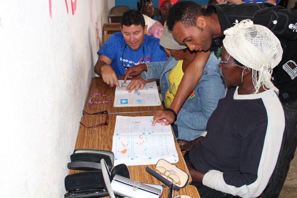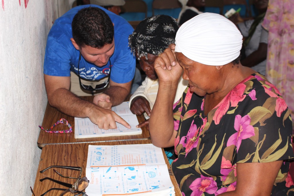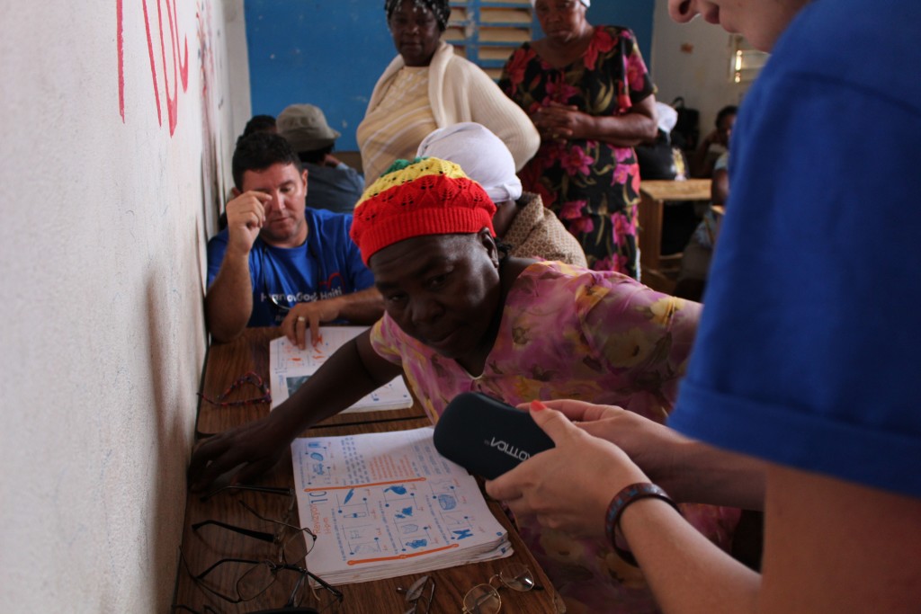 Heart of God Haiti‘s Adult Literacy Program created a challenge that caught us by surprise. Some of the folks learning to read and write and handle finances were plagued with poor eyesight which further complicated the task of learning as an adult. With generous donations from friends of Heart of God Haiti, we were able to provide reading glasses to several adults who struggled with their eyesight, making reading out of the textbooks much easier. We took some time to work with each adult, asking them to try on reading glasses while looking at a workbook. You could see their face light up once they were able to see clearly and make out the small letters they’d struggled to read only moments before.