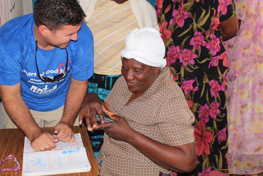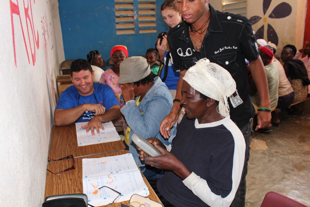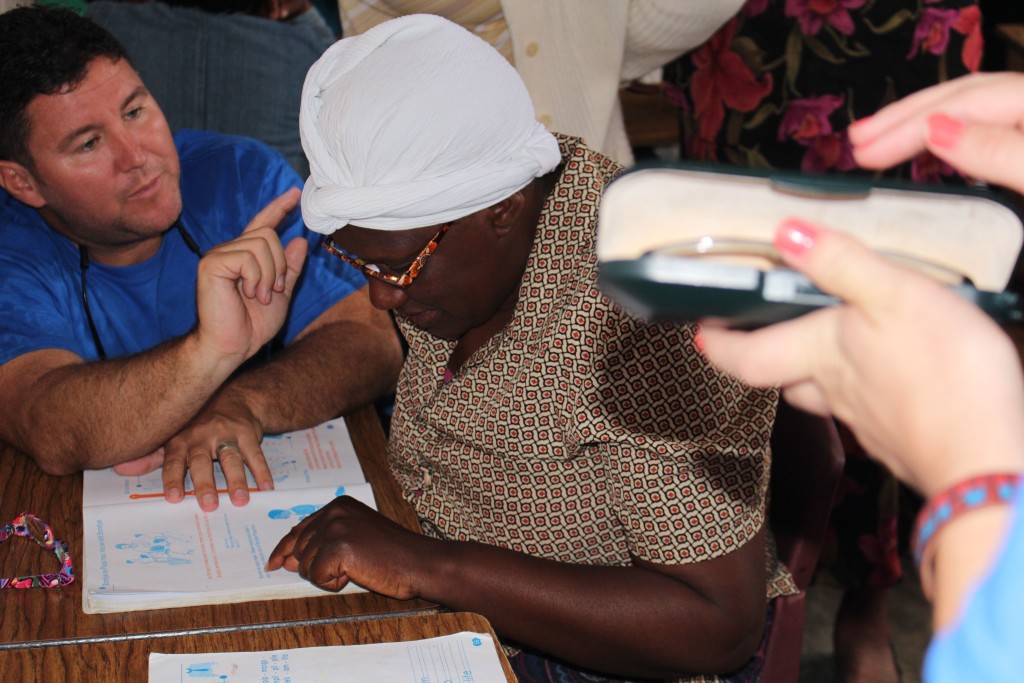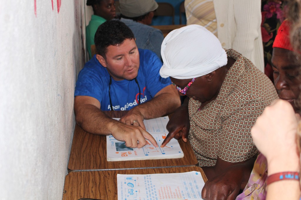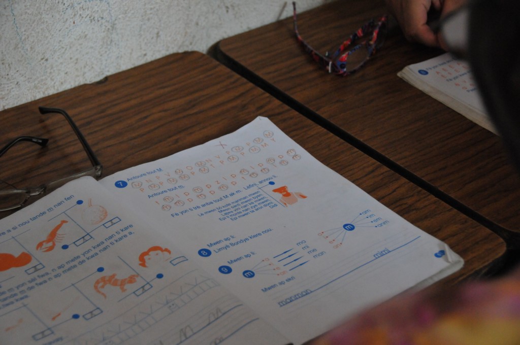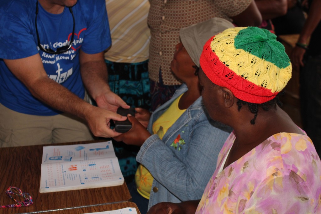 Heart of God Haiti‘s Adult Literacy Program created a challenge that caught us by surprise. Some of the folks learning to read and write and handle finances were plagued with poor eyesight which further complicated the task of learning as an adult. With generous donations from friends of Heart of God Haiti, we were able to provide reading glasses to several adults who struggled with their eyesight, making reading out of the textbooks much easier. We took some time to work with each adult, asking them to try on reading glasses while looking at a workbook. You could see their face light up once they were able to see clearly and make out the small letters they’d struggled to read only moments before.